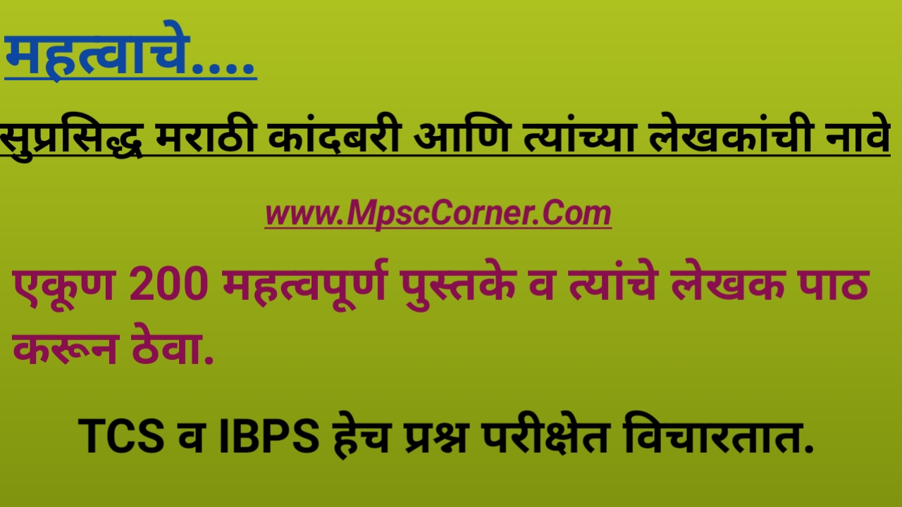 Marathi Books and Their Authors !सुप्रसिद्ध मराठी कादंबरी आणि त्यांच्या लेखकांची नावे.