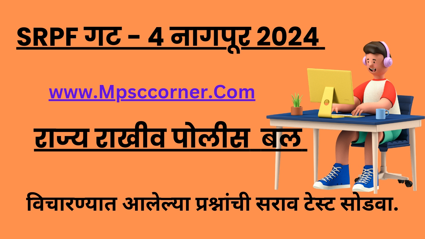 राज्य राखीव पोलीस बल गट क्रमांक 4 नागपूर मध्ये विचारल्या गेलेल्या प्रश्नांची सराव टेस्ट |SRPF Gruop 4 Nagpur Paper ! सराव टेस्ट क्रमांक – 1 टेस्ट सोडवा