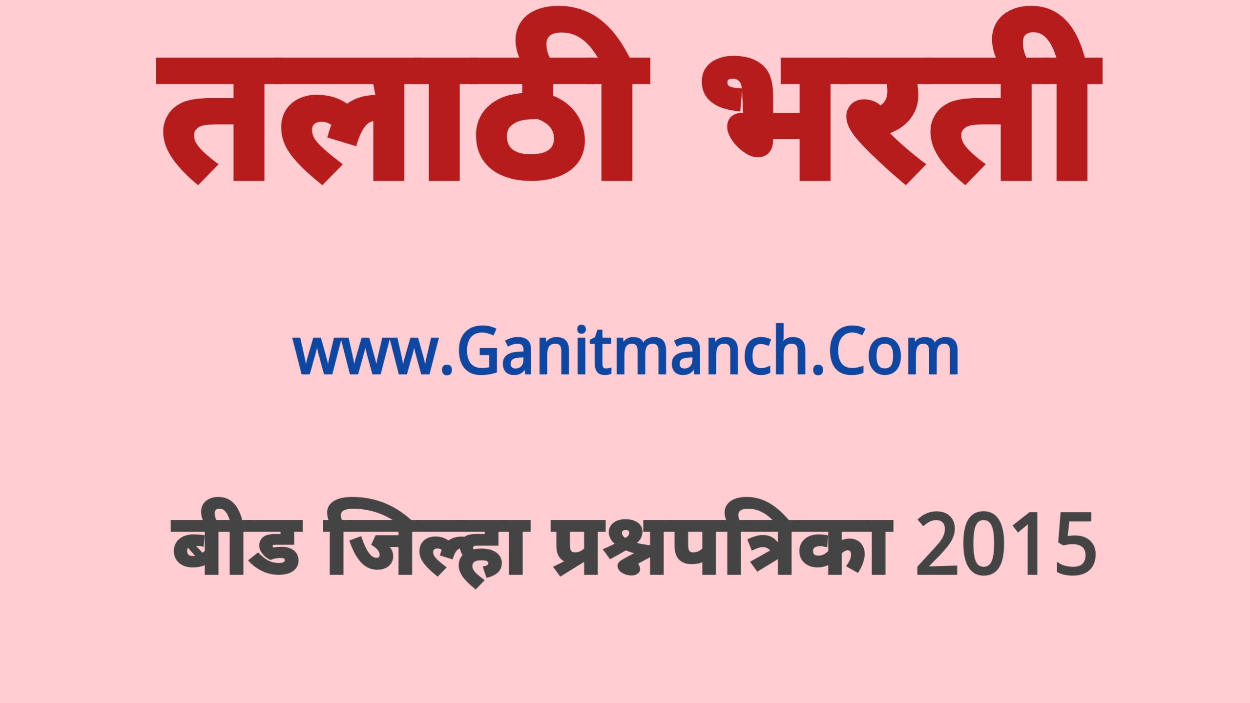 Talathi Question Paper ! बीड जिल्हा तलाठी भरती 2015 प्रश्नपत्रिका -1